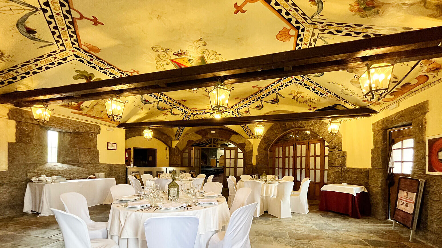 Situada en el interior de “El Fuerte”, esta sala destaca por su iluminación cálida, su zócalo de piedra y el vistoso mural del techo. Ideal para reuniones y presentaciones.
