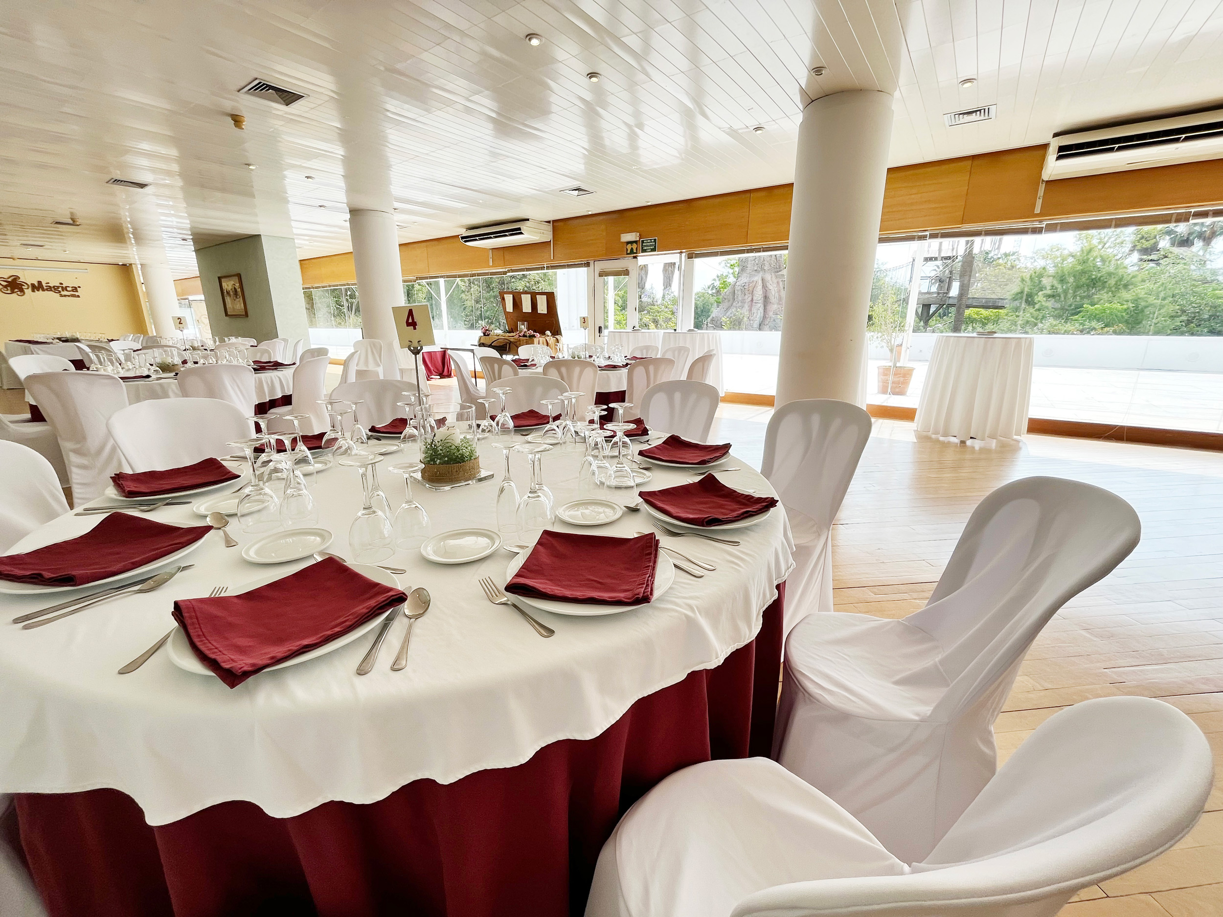 Esta sala tiene una fantástica terraza exterior que constituye un lugar privilegiado desde el que se puede disfrutar de la trepidante vida del Parque Temático Isla Mágica, por lo que resulta un marco ideal para la organización de cocktails o cenas.