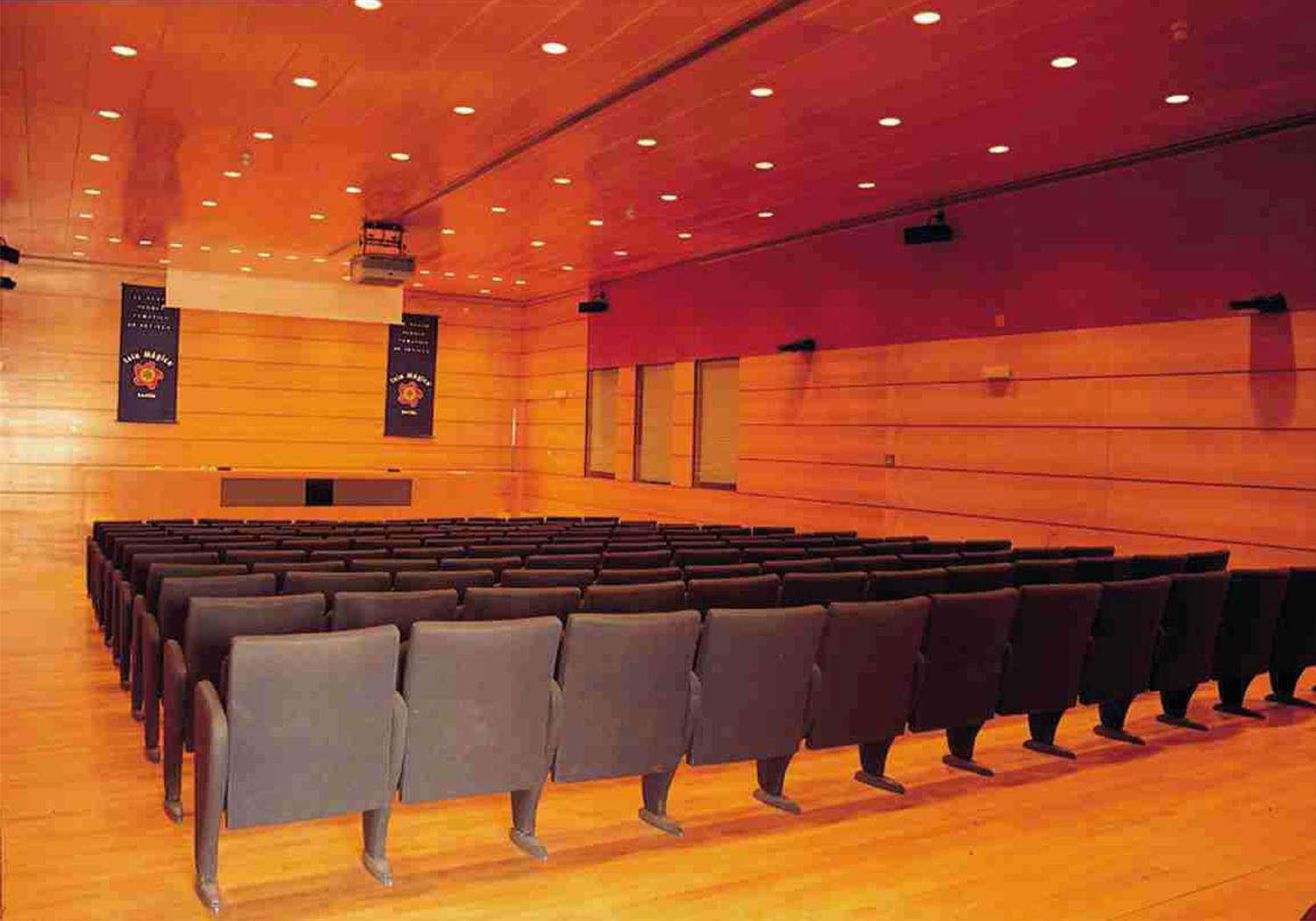 Esta sala está especialmente preparada para conferencias, ruedas de prensa y jornadas de trabajo Cuenta con todos los medios técnicos necesarios: micrófonos, equipo de sonido, proyector y pantalla de grandes dimensiones.