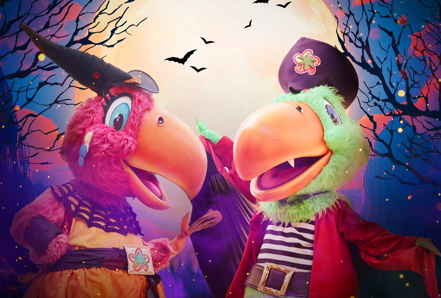 ¡Llega Halloween y nuestras mascotas, Capitán Pico y América, han buscado sus atuendos más tenebrosos para que puedas hacerte una foto y llevarte un gran recuerdo a casa de tu paso por Isla Mágica!