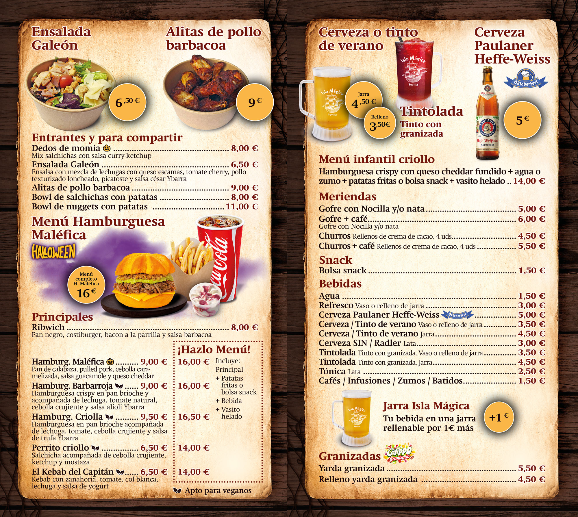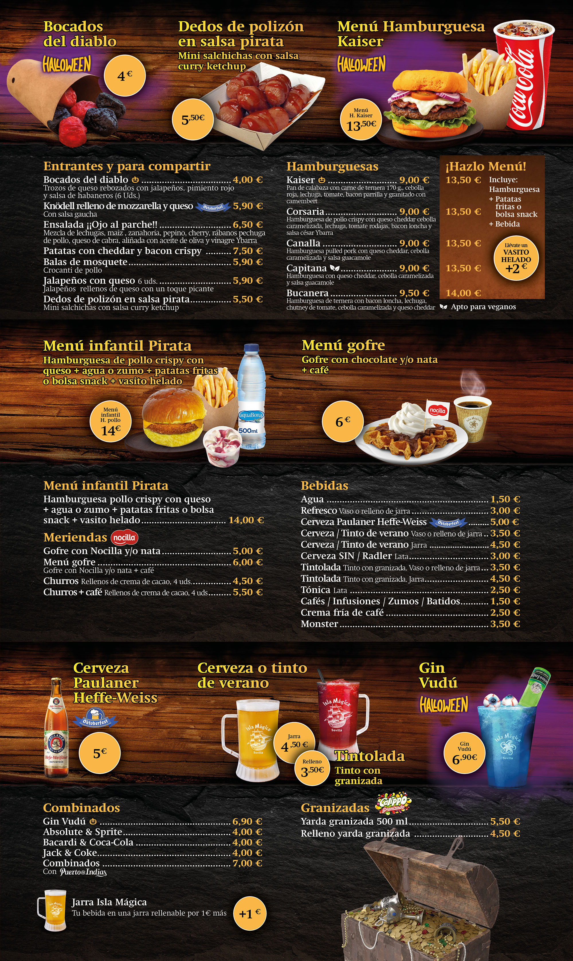 Construido con restos de naufragios y decorado con sus tesoros, es el lugar donde los más temidos piratas reponen fuerzas mientras comienzan los espectáculos de La Fragata o El Polvorín. Disfruta de entrantes, hamburguesas y ensaladas.