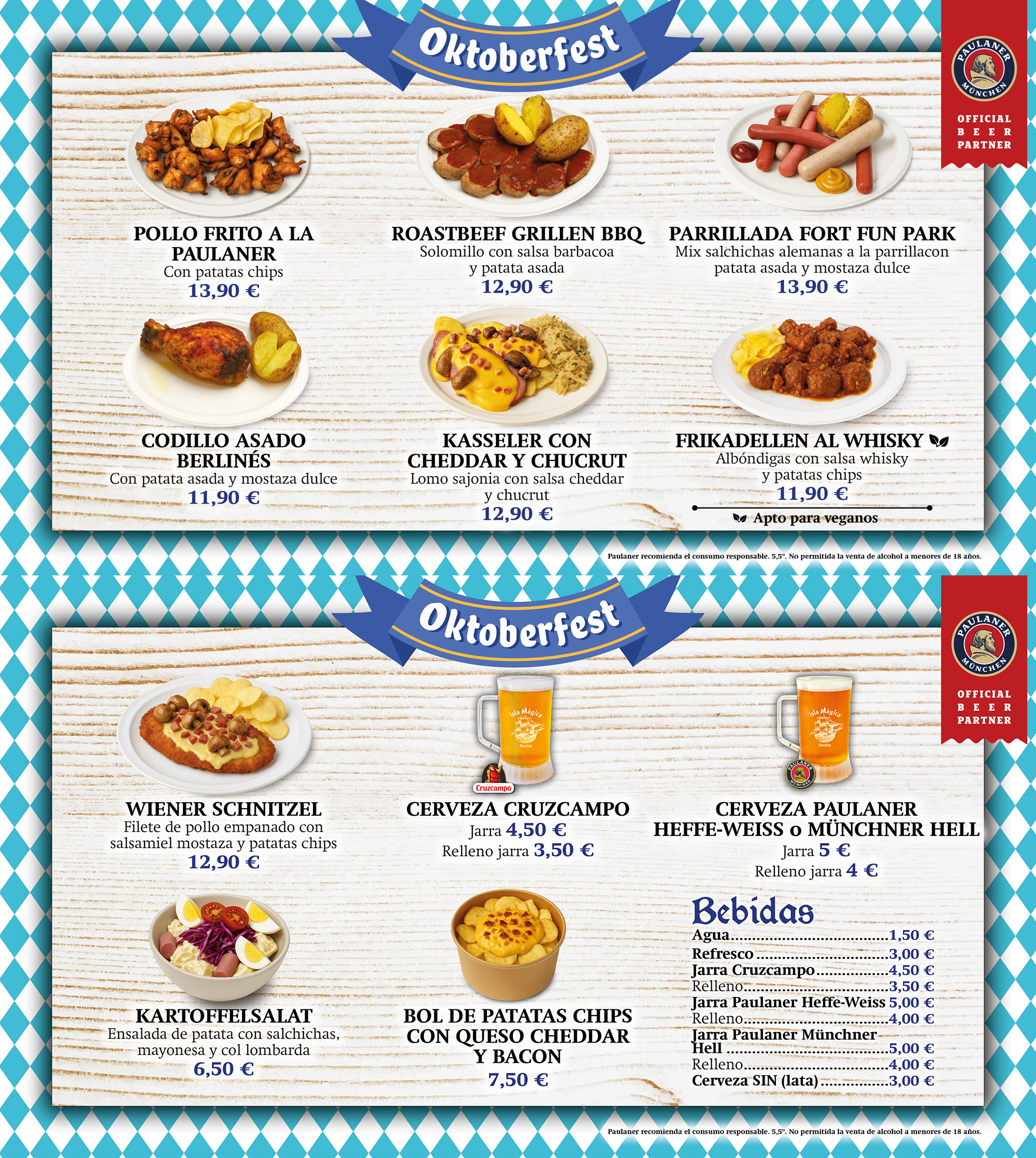 Durante Halloween, disfruta de los platos y bebidas especiales por Oktoberfest. El resto de la temporada, pizzas, gofres y palomitas para disfrutar durante las actuaciones en el Fuerte.