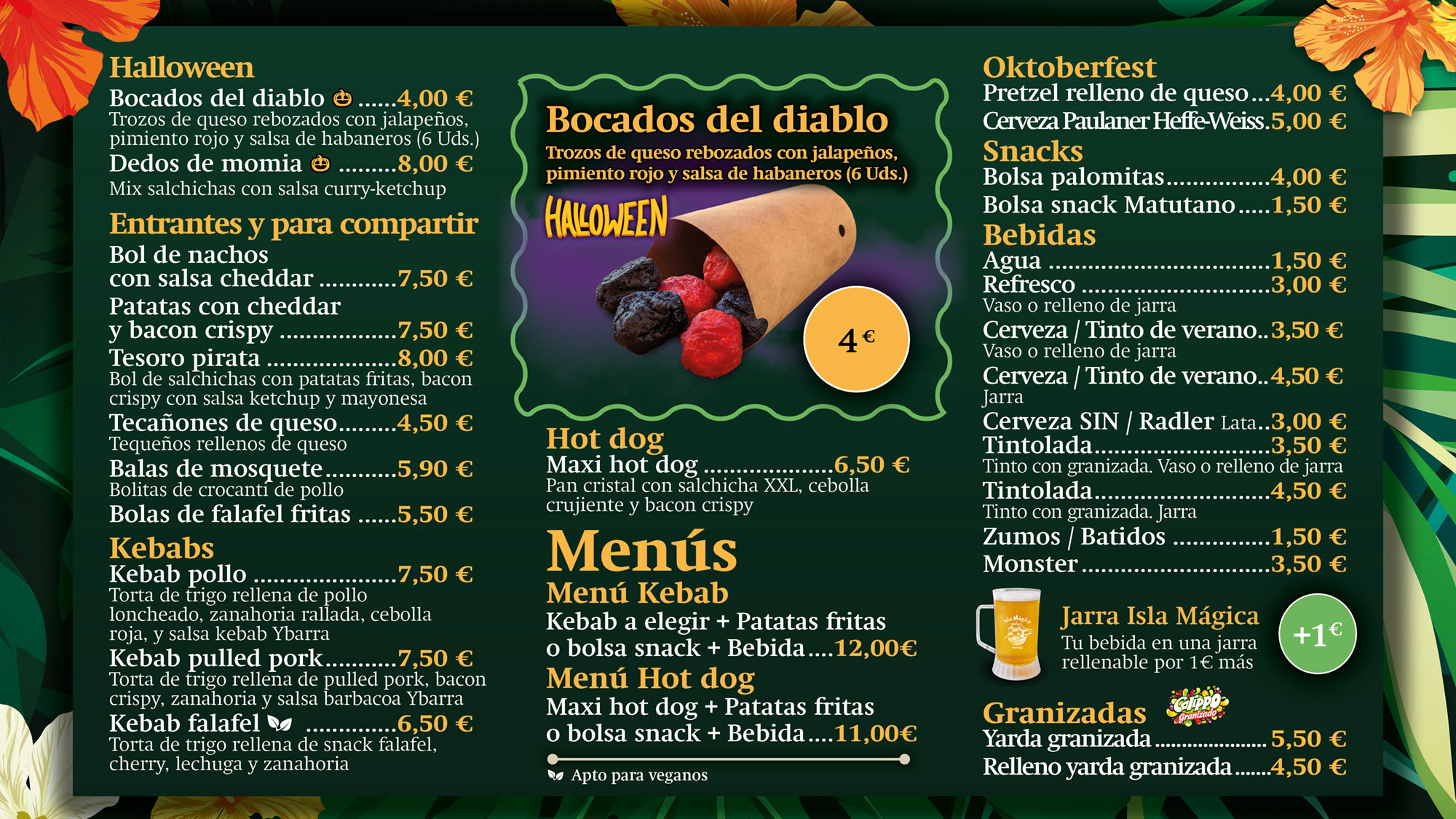 Durante Halloween, disfruta de los platos y bebidas especiales por Oktoberfest. El resto de la temporada, cafetería y heladería situada en el exterior de El Fuerte.
